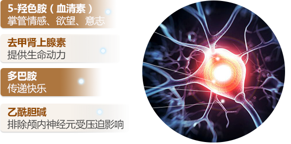 患者小刘的偏头痛折磨了他4年多,让他身心疲惫,5-羟色胺和去甲肾上腺素这两种神经介质之间极度不平衡,导致患者神经回路紊乱,又加剧了神经介质的失衡。
